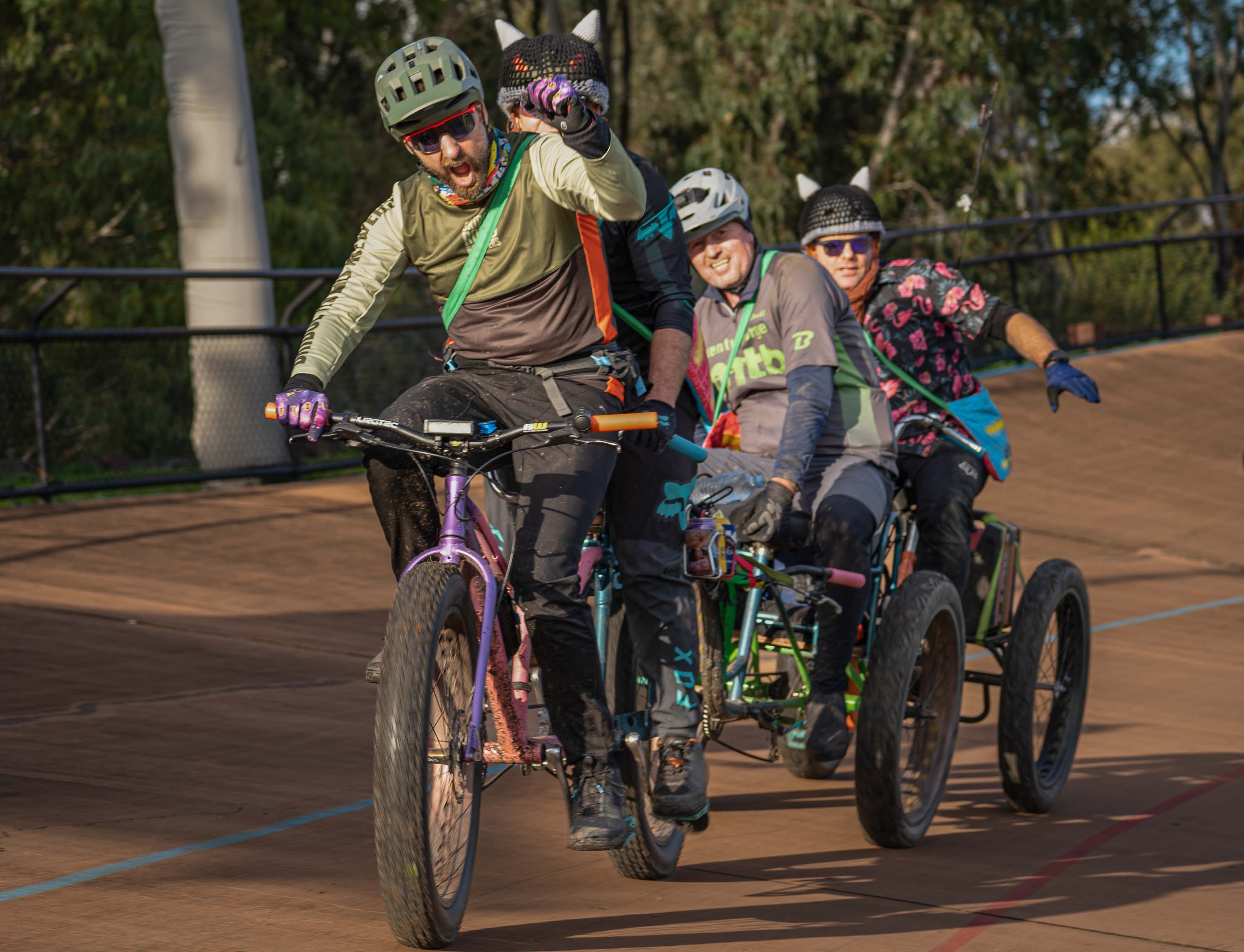 A rocket ship came close - but couldn't blast last years winners away from the Plenty Gorge MTB club with their extended 'bike' - a length of steel and wheels resembling a massive caterpillar.