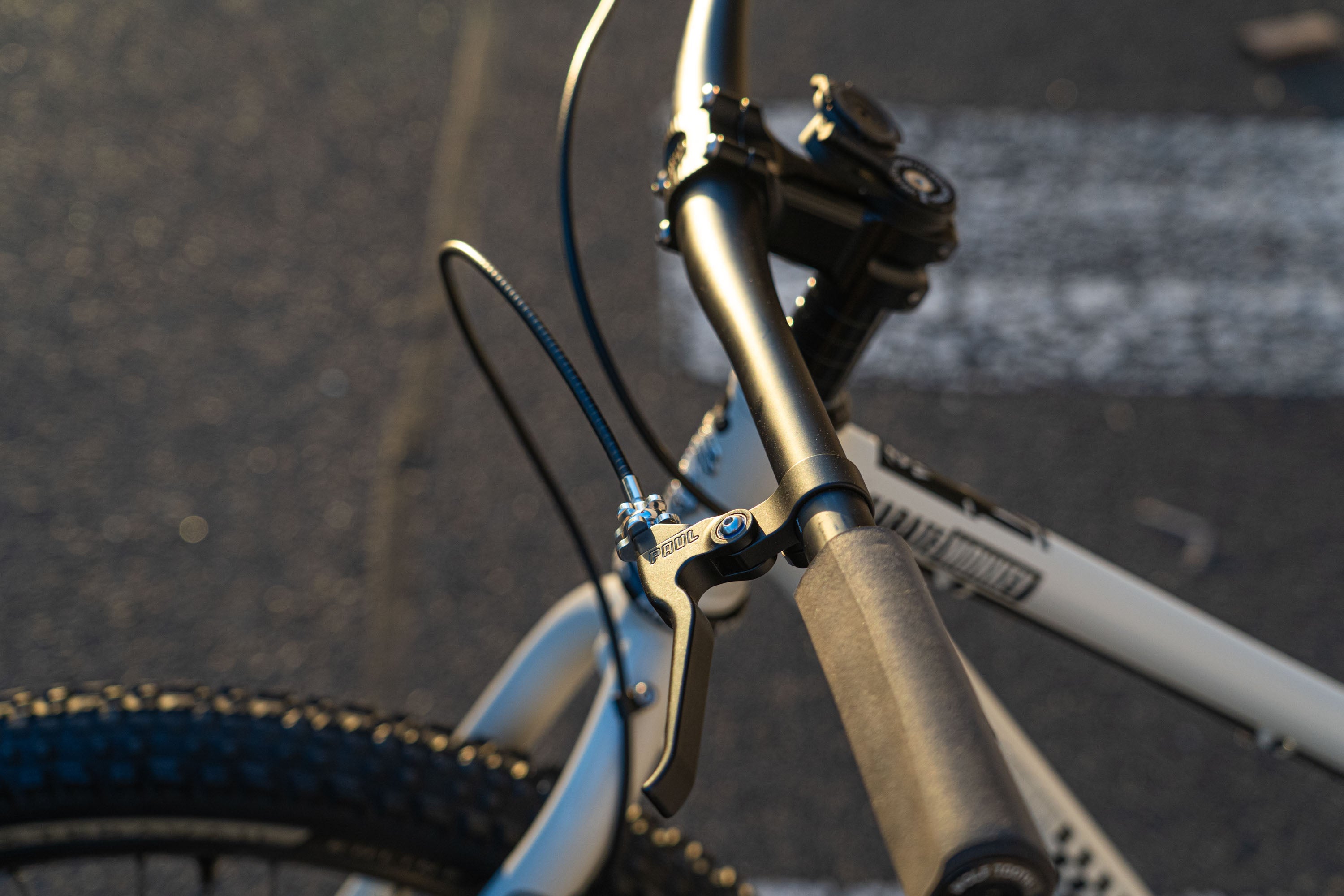 Paul Component Box Car stem is front and centre, with their trick brake levers, trickling down to the Klamper calipers through Yokozuna housing.