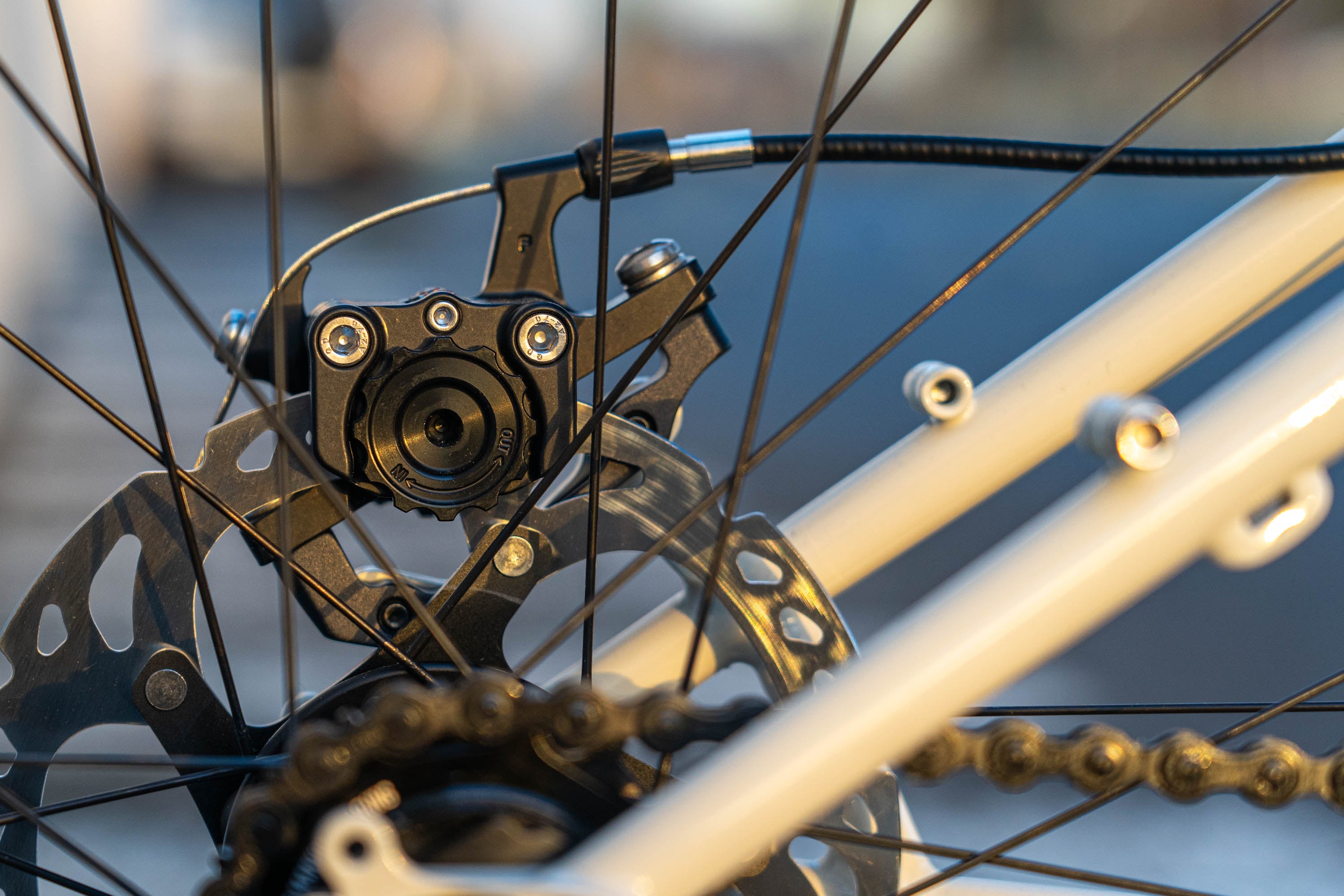 An Izumi chain joins the chainring to the cog, ready for all the torque you can muster.